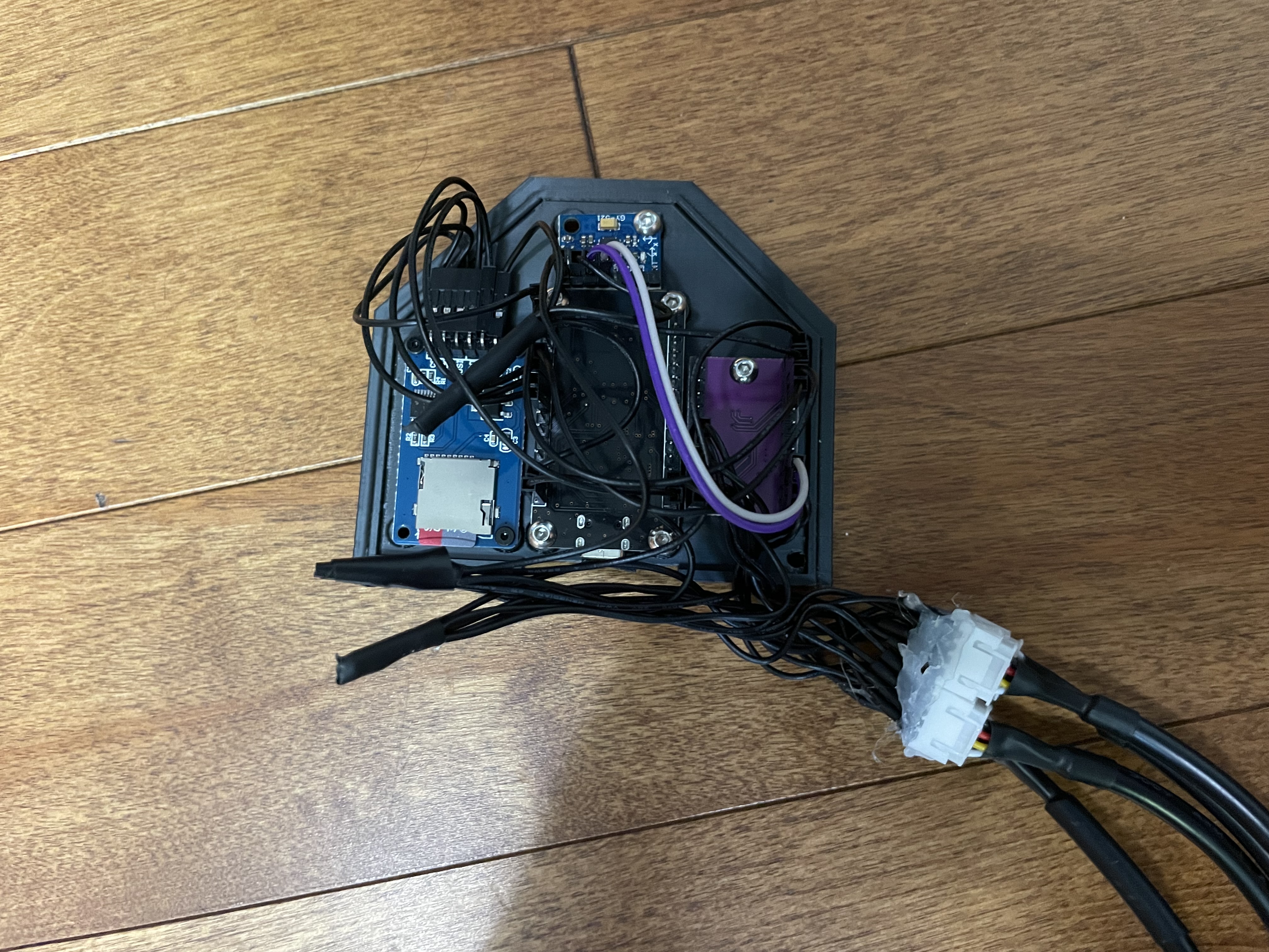 Skatelligence V0 consists of 5 main modules. 1 being the central module mounted to the skater's lower back, and the other 4 being accelerometers connected to each of the skaters wrists and skates. All 4 of the smaller modules are connected to the main module using wires, and the main module connects to a computer using wifi.